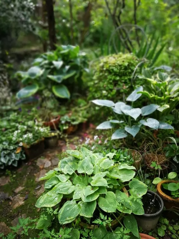 l’angolo ombroso con una piccola collezione di Hosta. foto di Tiziana Sanna